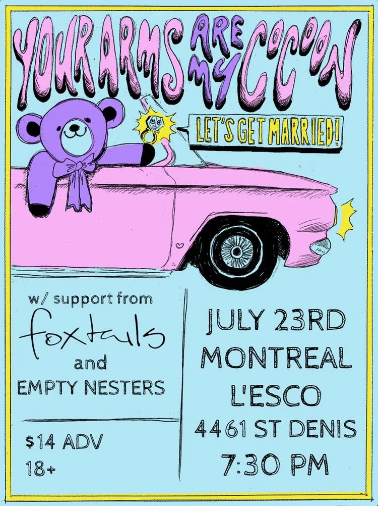 Your Arms Are My Cocoon + Foxtails + Empty Nesters Sunday, July 23, 2023 7:30 p.m. 11:55 p.m. L'Escogriffe Bar 4461 Rue Saint-Denis Montréal, QC, H2J 2L2 Canada (map) Google Calendar ICS BILLETS | TICKETS Dulls by Empty Nesters RETOUR AU CALENDRIER | BACK TO CALENDAR